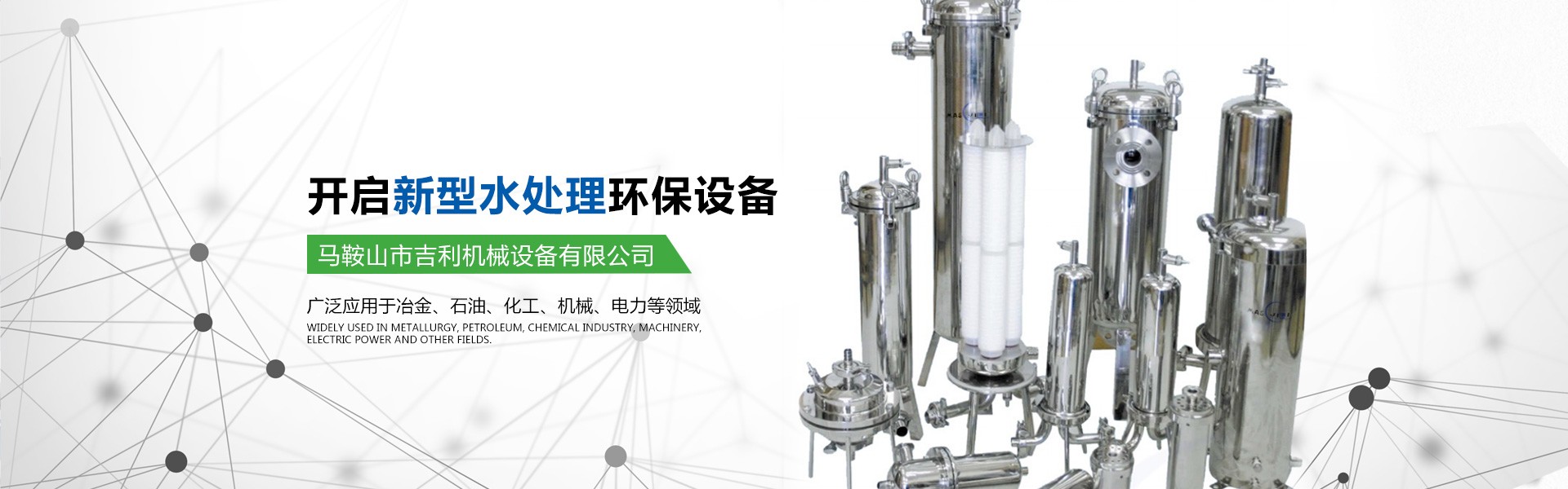 馬鞍山市吉利機械設備有限公司位于江南名城一馬鞍山市,交通十分便利。公司具有獨立法人資格,是集水處理設備的研發(fā)、設計、生產(chǎn)、銷售為一體的專業(yè)型企業(yè)。公司的主要產(chǎn)品有高中速過濾器、纖維球過濾器、新型除油過濾器、無閥過濾器、加藥裝置、管道全自動過濾器、淺層砂過濾器、攪拌機、沙水分離器、管道靜態(tài)混合器、化水設備、反滲透等膜處理設備、空氣過濾器等。公司所研發(fā)的產(chǎn)品有占地少、處理效果好、投資省、操作管理方便的優(yōu)點,受到客戶的一致好評。